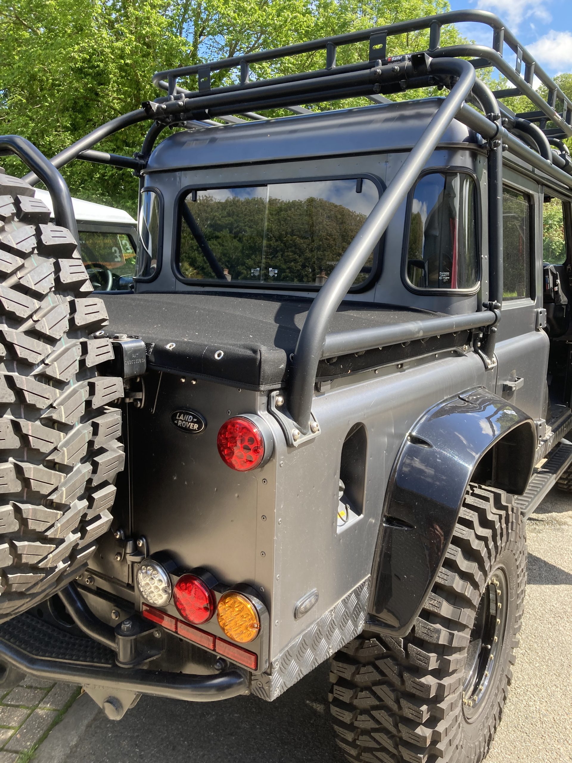 This is a very special one off Spectre type 110 Double Cab, Built in 2020 using new galvanised chassis, custom body work with semi matte grey body work finished with black detailing, interior is black & red leather electric seats, bespoke head lining & carpets, full electric pack including all electric windows, all lighting is LED with additional side marker lighting, Safety Devices full roll cage with roof rack, 37×12.50R16 Trepador Maxxis tyres on 10×16 Challenger wheels, Custom build rear wheel carrier on side opening rear tailgate fitted with high level brake light, uprated Kenwood with park assist, Exmoor trim load cover, Uprated Terrafirma suspension, Terrafirma A1200 winch, NAS rear tow step, Engine has been reprogrammed with full decay system, The list is endless so please ring for further specification.